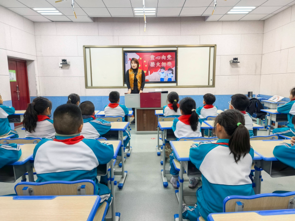 家長講師圍繞黨史展開教學(xué):科普黨徽與黨員徽章的區(qū)別及用途,講解紅軍時期、抗日戰(zhàn)爭時期等不同階段入黨誓詞的內(nèi)涵,解讀國歌《義勇軍進行曲》背后的紅色故事;還分享盛易三、狼牙山五壯士、劉胡蘭等英雄事跡,并以小英雄雨來的故事為重點,通過多輪互動帶動學(xué)生共情,鼓勵大家學(xué)習英雄精神,傳承紅色基因,爭做有擔當?shù)膹妵倌辍?/p>