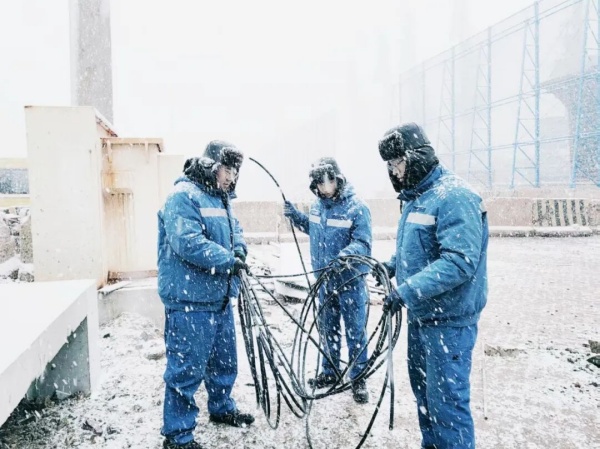 運(yùn)營(yíng)保障中心電力站正在風(fēng)雪中書(shū)寫(xiě)他們的歲末“通關(guān)圖鑒”。為保障設(shè)備測(cè)試進(jìn)度,班組成員迎著凜冽的寒風(fēng)與紛飛的雪花,并肩協(xié)作、全力敷設(shè)臨時(shí)電纜。每一段纜線的延伸,都是他們用專業(yè)與熱忱融化嚴(yán)寒的足跡。這場(chǎng)與時(shí)間的賽跑,不僅為港口高效運(yùn)轉(zhuǎn)注入動(dòng)能,更以一步一腳印的奮戰(zhàn),描繪出團(tuán)隊(duì)協(xié)作、攻堅(jiān)克難的歲末奮斗場(chǎng)景。
