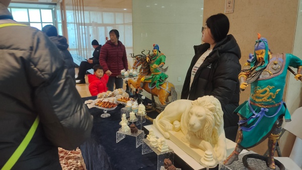 值得一提的是,本次大集突出“海洋文化”與“年節(jié)創(chuàng)意”融合特色。“藝饗珍品 巧塑東方”系列將傳統(tǒng)面塑與手工巧克力相結(jié)合,推出關公面塑、桃子花餑餑及威猛獅子造型巧克力等產(chǎn)品,兼具視覺藝術與味覺享受。此外,煙臺記憶、核雕、小陶瓷、民間玩具衍生文創(chuàng)等創(chuàng)新產(chǎn)品,也吸引不少市民駐足欣賞。