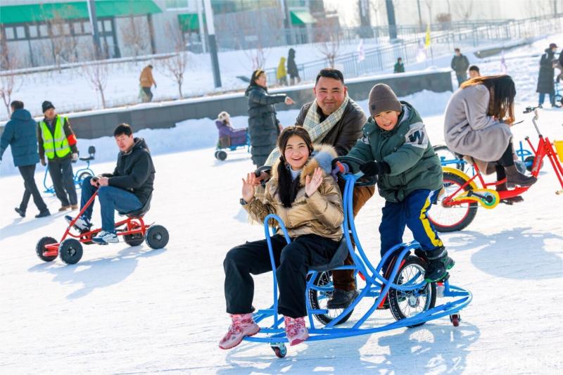 2026年1月2日,游客在青格達(dá)湖國家級旅游風(fēng)景區(qū)體驗冰上運動。魏新江 攝