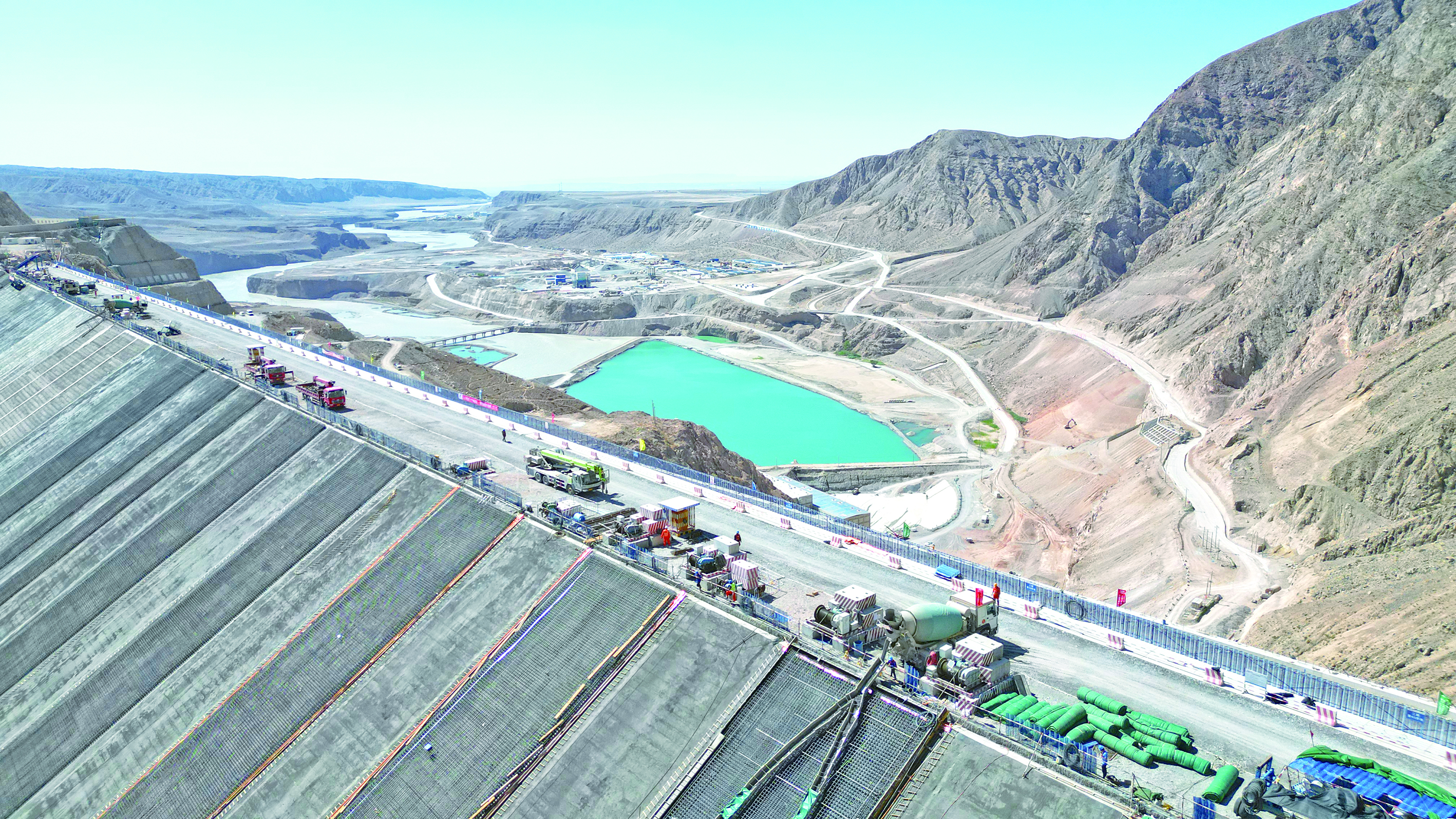 2025年6月18日,新疆大石峽水利樞紐工程大壩正在進行三期混凝土面板澆筑工作! ∮浾摺≮w士杰 攝