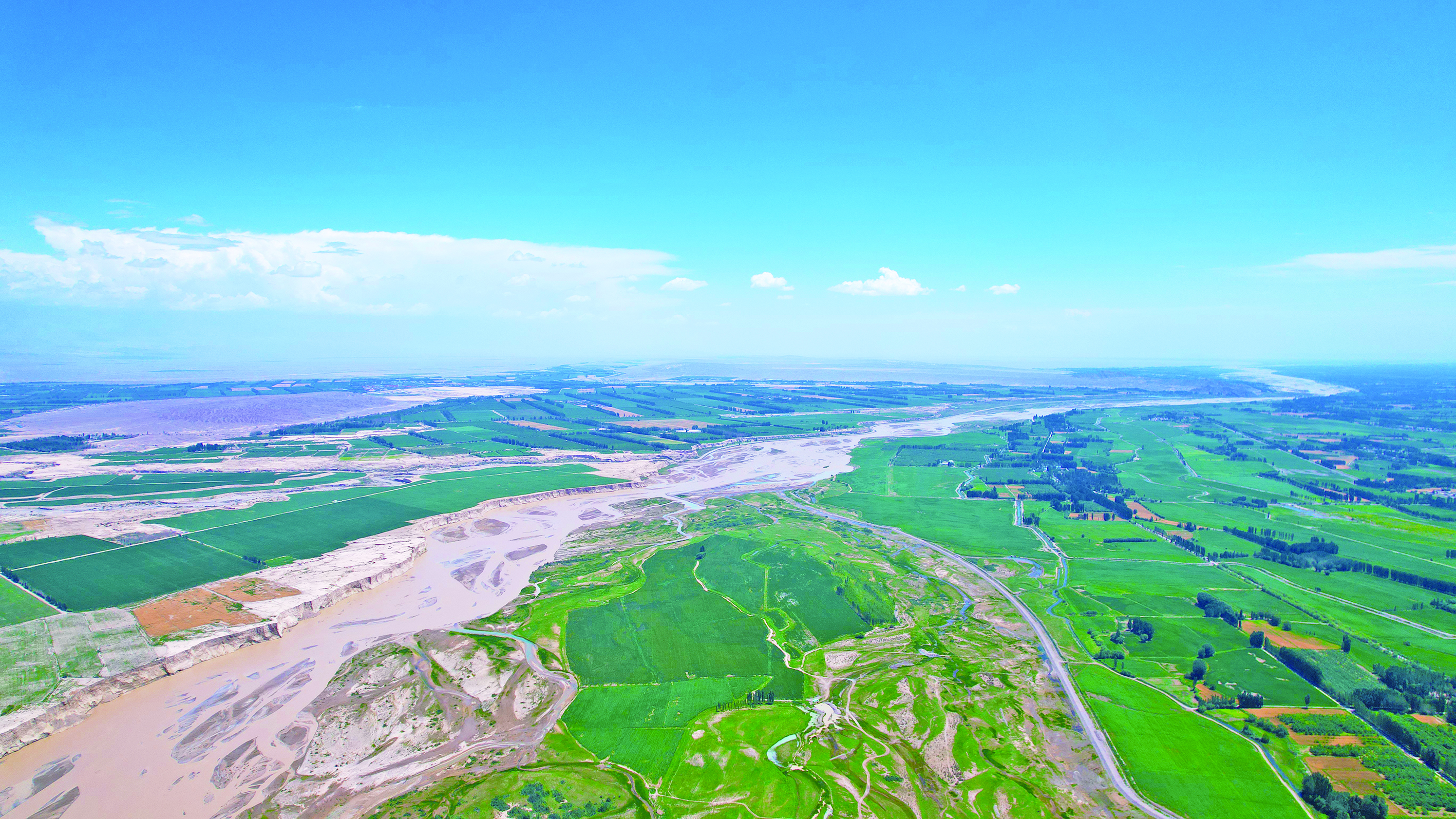 2025年8月10日,烏什縣托什干河國家濕地公園綠意蔥蘢、生機盎然。蜿蜒的河流、豐茂的濕地與兩岸的田野交織出一幅生態(tài)和諧的美麗畫卷。 通訊員 王舉南 攝